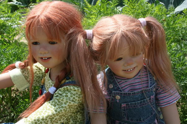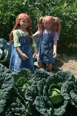 „…und das Gemüse auch!“ Begeistert betrachten die Schwestern die riesigen Kohlköpfe im Garten. |