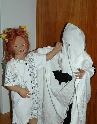 Da steht doch tatsächlich ein echtes Gespenst! Genauso wie es eben in den Geschichten beschrieben wurde, die sie gelesen haben.