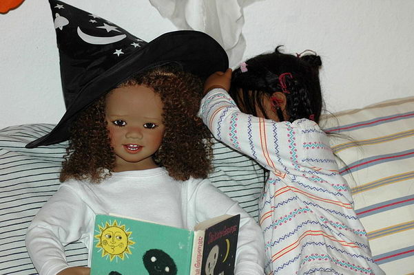 Bald ist Halloween und die Kinder haben beschlossen, eine Halloween-Lesenacht zu veranstalten. Sie haben ihre Kuschelecke dazu mit einer Halloween-Girlande, einem Gespenst und Fledermäusen geschmückt und es sich mit ein paar Knabbereien gemütlich gemacht.